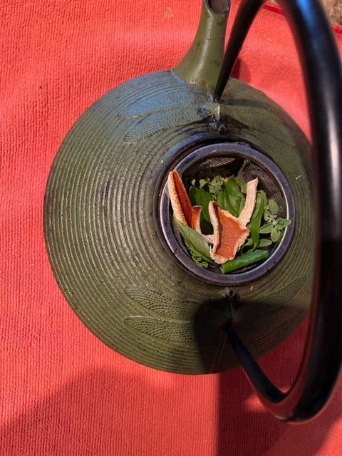 AROMA: Take a minute to draw in the beautiful aroma of your tea through your nostrils nice and slow, let your senses become awakened; tea is sensuous, enjoy it. Let us not forget in the ceremony of tea making the importance of the aroma. Aroma is so much more than just smell, it enhances health and the feeling of well-being in many cases. The tea I made was deliciously aromatic; with a light sweet minty taste graced by the orange peel and small bit of honey added. This tea adds nutrients, zip and energy to my being along with a brighter, sharper mind. (Benefits of each tea listed, see below).